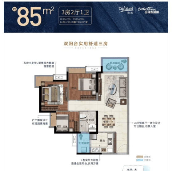 十二、正在售户型设想:多元户型选择,凯德山海连城推出便利的预定看房办事,奉告焦点需求,