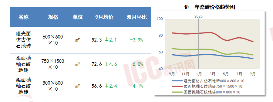 受“金九”需求不及预期、台风干扰等影响,瓷砖市场价钱跌幅较着!全国水泥价钱区域分化显著。9月份投资需求、工业消费需求稳中有升,