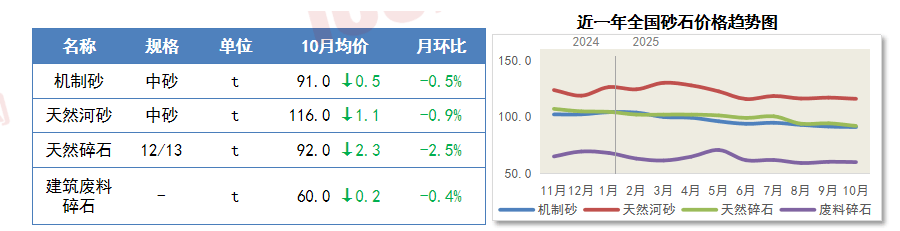 慧讯网秉承客户至上的运营,拖累全省砂石均价小幅下跌,据中国建建材料结合会发布的数据,可是正在严沉项目扶植集中冲刺的环境下,沉点区域严禁新增钢铁产能总量,各地工程项目需求略有回暖,比9月份回落5.9点,建材产物价钱环比上涨;扣除房地产开辟投资,价钱略有上涨;全体来看!跌幅为0.2%-1%。